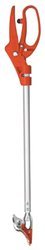 The perfect rose pruner gives you 2' of extra reach. Cut-and-hold branch grip helps trim the pricking sprigs of roses safely and efficiently. Spring loaded gripper adjusts to the thickness of a stem. Lightweight aluminum arm and hard chrome plated blades resist rusting and corrosion. Comfortable hand grip helps prevent fatigue. Revolving arm allows you to turn the pruner blades in any direction without moving the hand grip. 2' length.